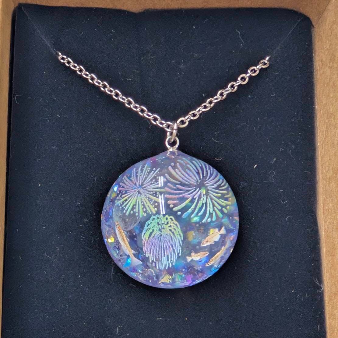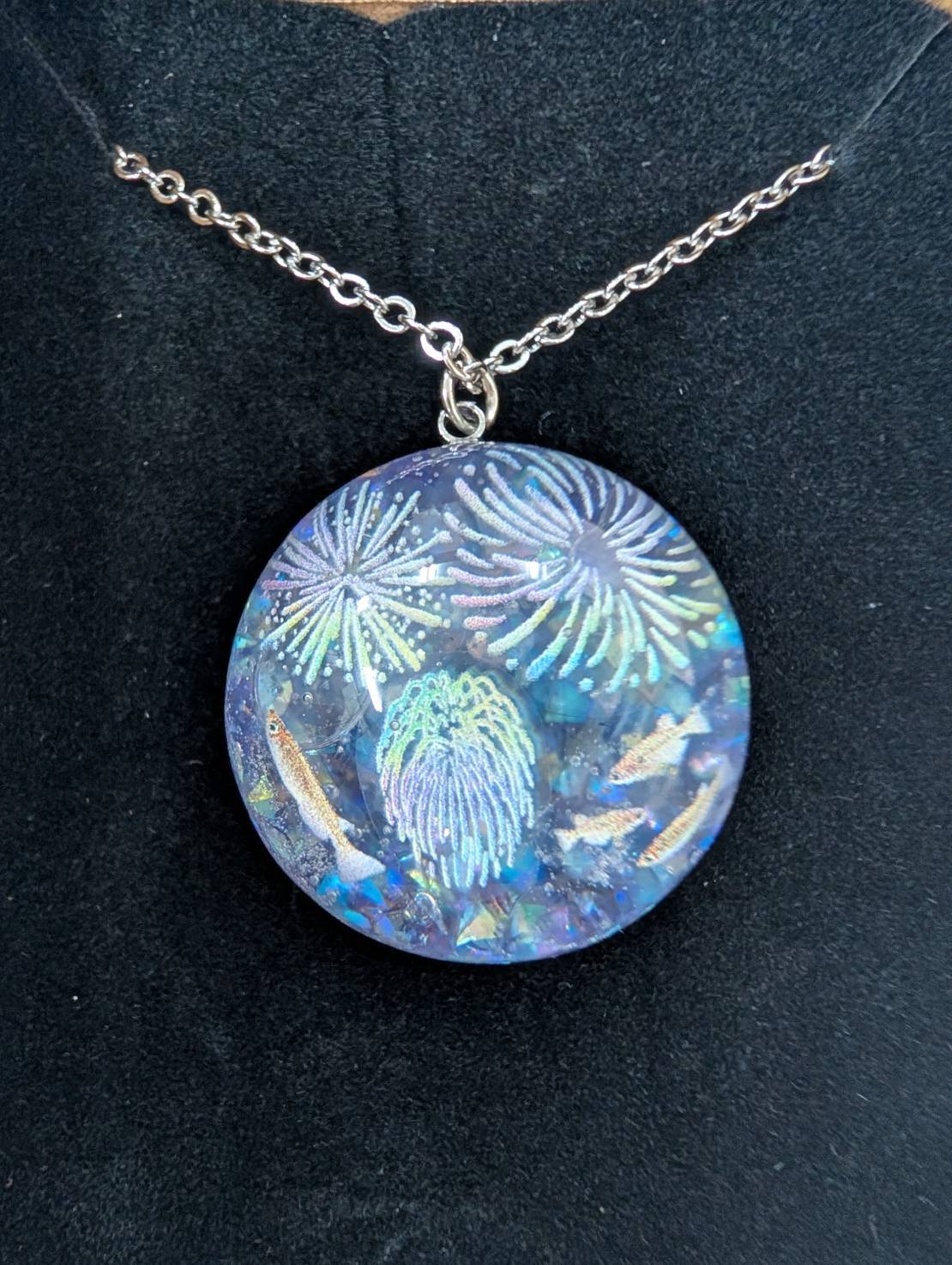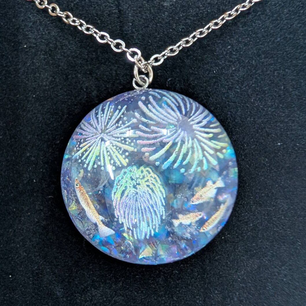 rt.2 レジンネックレス 中 花火とめだか オリジナル1点もの